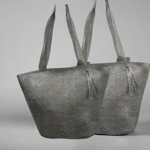 BOLSO PLATEADO ,CON ASAS PARA COLGAR