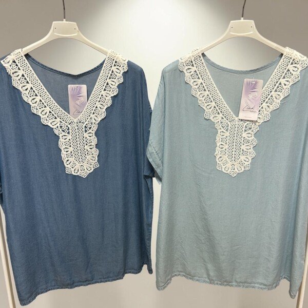 CAMISA DE TELA , IMITACIÓN A VAQUERA CON DETALLES EN EL CUELLO