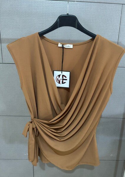 CAMISETA DE LICRA , CON DETALLES DE CRUCE EN LA PARTE DELANTERA